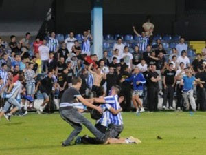 Εκμεταλλευόμενος την αναστάτωση που επικρατούσε, ένας άλλος οπαδός μπήκε μέσα στον αγωνιστικό χώρο και αφού πήρε αγκαλιά ένα παίκτη των γηπεδούχων, έσπρωξε άλλους δύο που είχαν στήσει την μπάλα έξω από την περιοχή των φιλοξενούμενων και με εκτέλεση φάουλ την έστειλε στα δίχτυα, πανηγυρίζοντας έξαλλα το γκολ του με οπαδούς που επίσης είχαν μπει στο γήπεδο!
