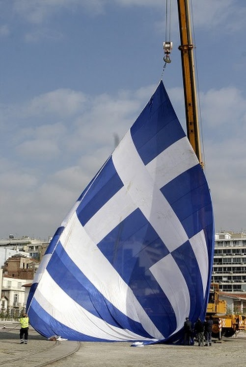 Η μεγαλύτερη ελληνική σημαία που κατασκευάστηκε ποτέ, επιφάνειας 480 τετραγωνικών μέτρων και βάρους 130…