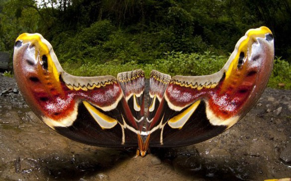 Γνωρίστε το μεγαλύτερο έντομο του κόσμου, γνωστό ως Attacus ή Atlas, τη στιγμή που κάθεται ήρεμα σε έναν δρόμο, στη βορειοανατολική Ινδία.