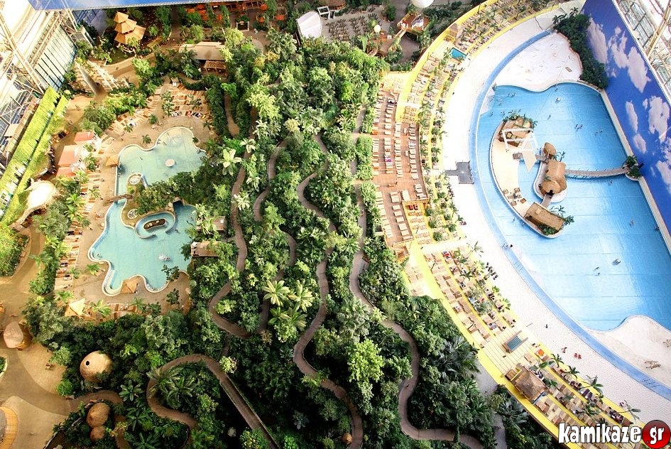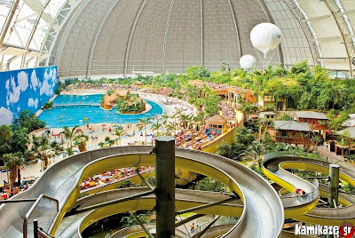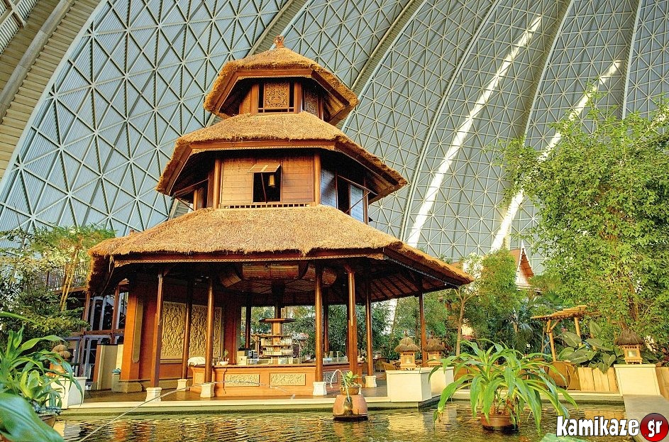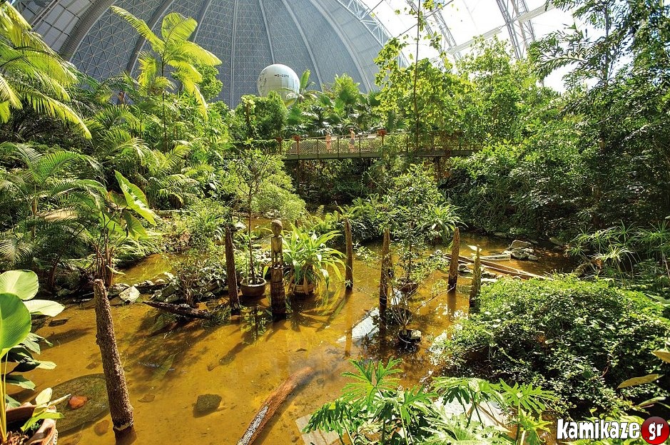 Βρίσκεται στο Βερολίνο της Γερμανίας, έχει χωρητικότητα 6,000 ατόμων, είναι υπερλούξ και έχει αρκετό χώρο για να πετάξεις ακόμα και με αερόστατο! Είναι το Tropical Island Resort...